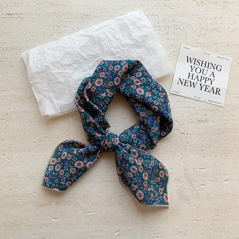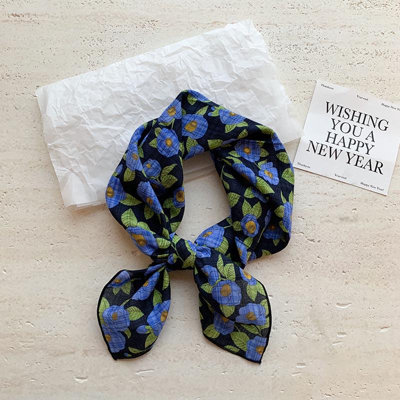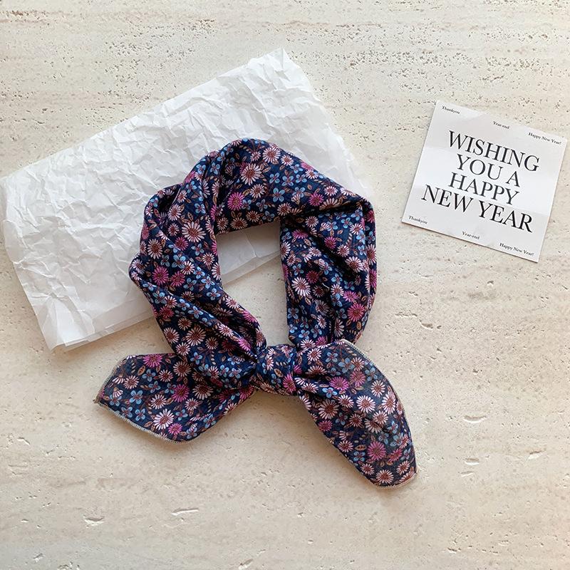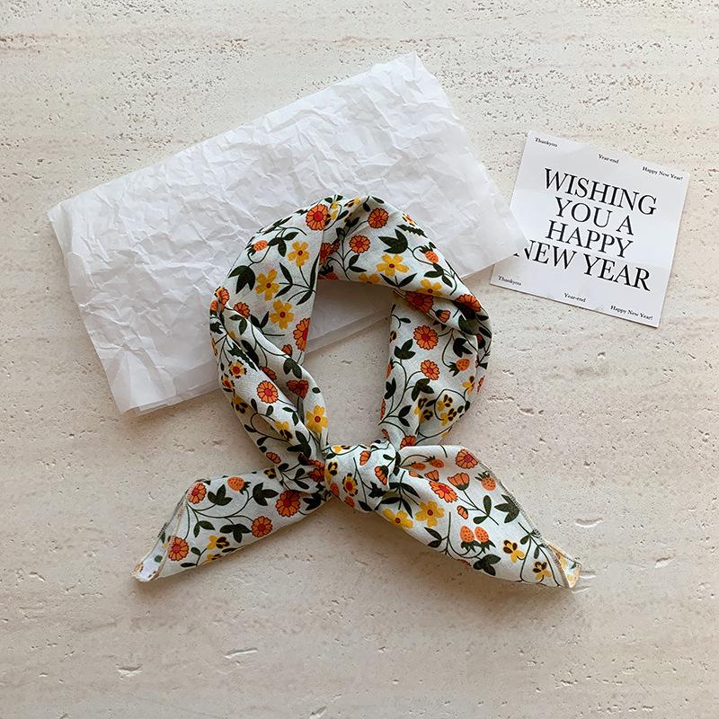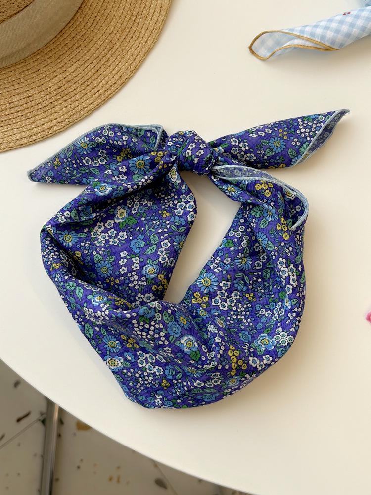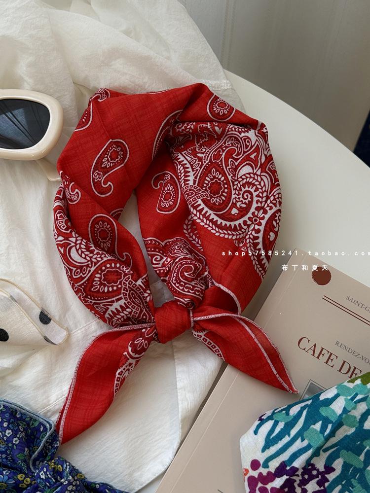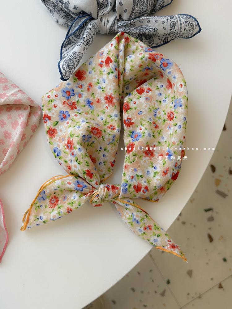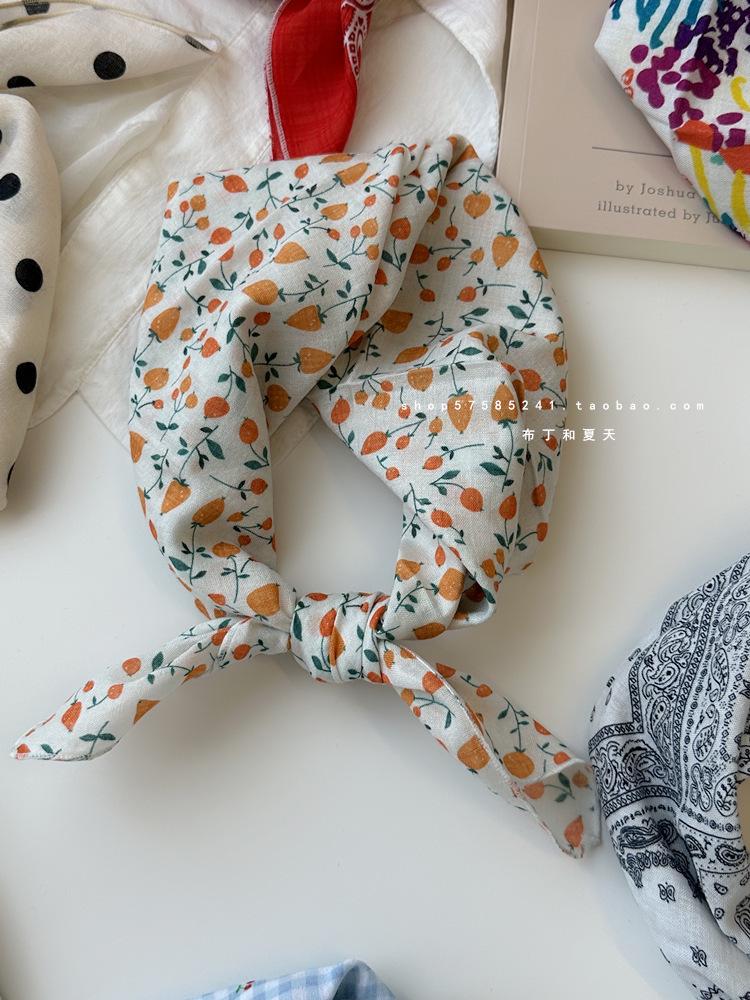 Хлопково-льняной квадратный шарф с цветочным принтом в горошек - Ретро и свежий платок