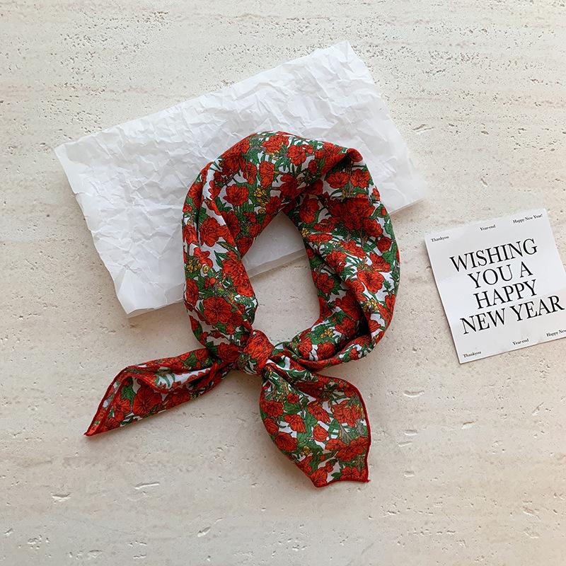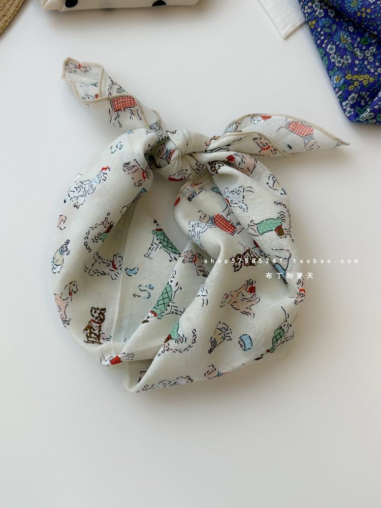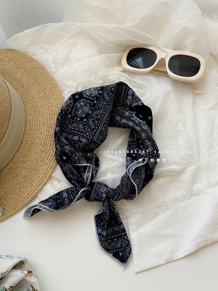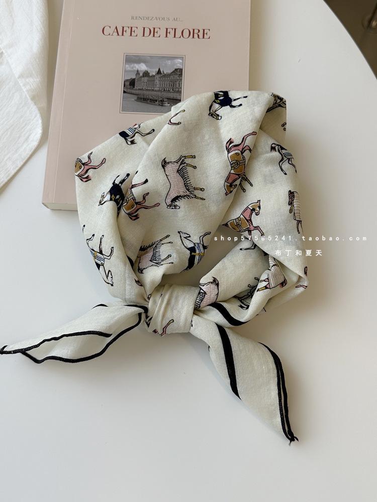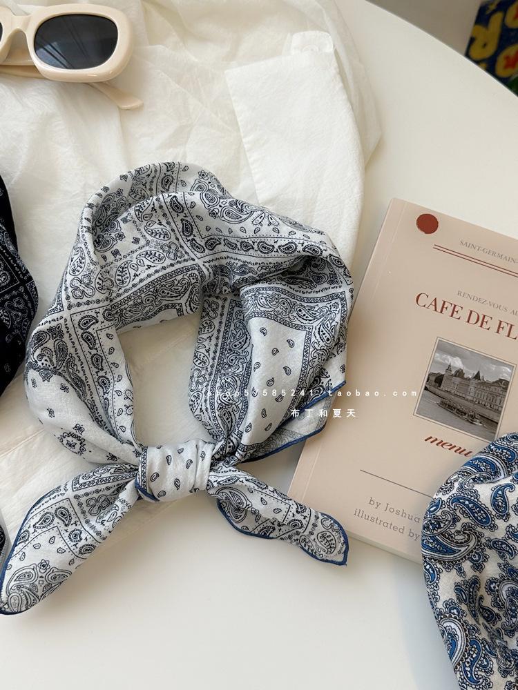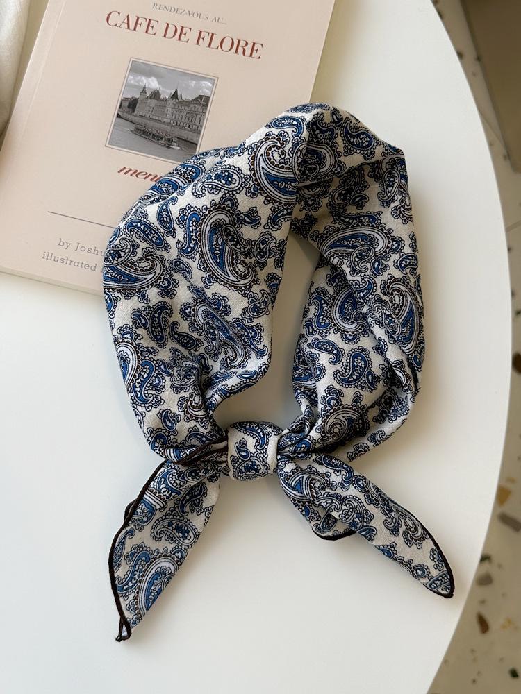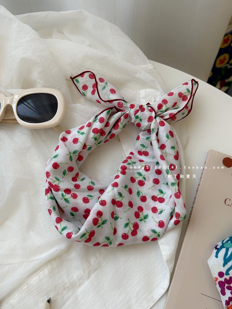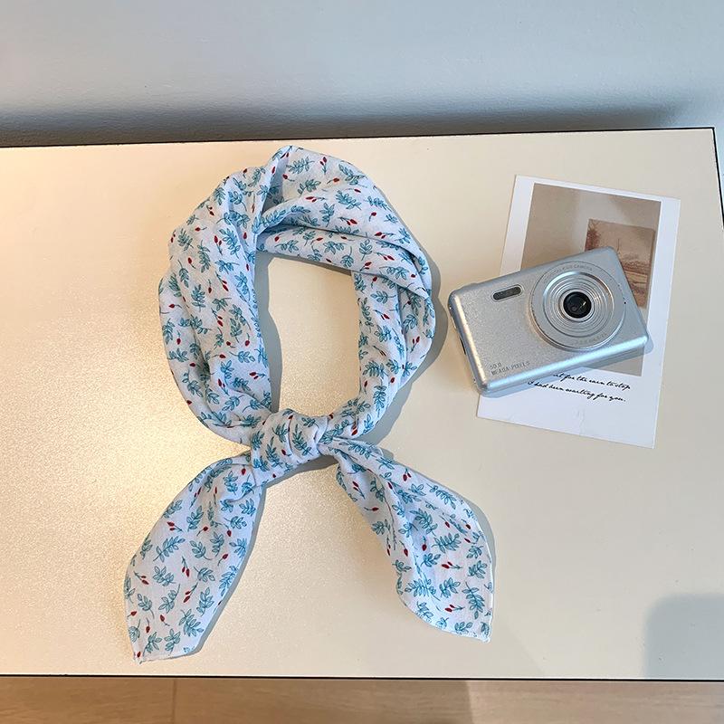 Хлопково-льняной квадратный шарф с цветочным принтом в горошек - Ретро и свежий платок