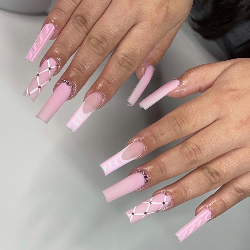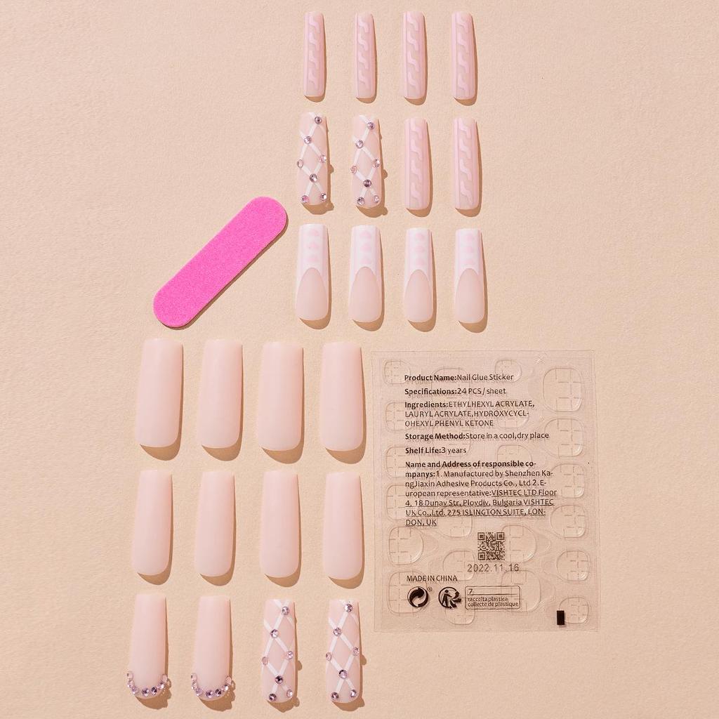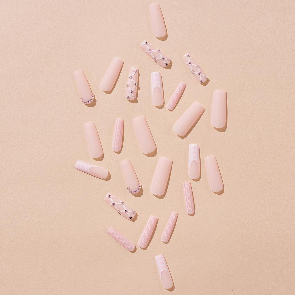 Европейский и американский стиль Французское сердце Долговечные прямоугольные клетчатые накладные ногти