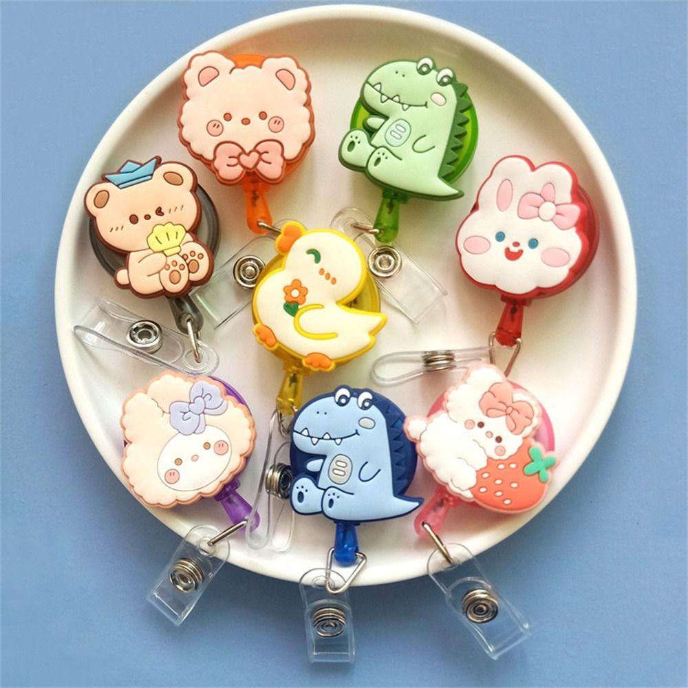 Bear Rabbit Retractable Badge Holder Dinosaur Easy Pull Buckle Cute Nurse Badge Reel Hospital Use