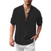 Amazon Независимая станция Внешняя торговля Осень и зима Мужская льняная рубашка Хенли Стойка воротник Длинный рукав Повседневная пляжная рубашка