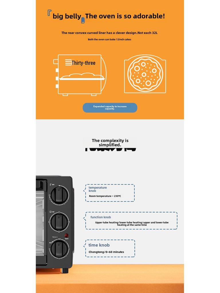 Электрическая духовка Galanz 32 л с равномерным контролем температуры и многофункциональными режимами выпечки