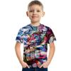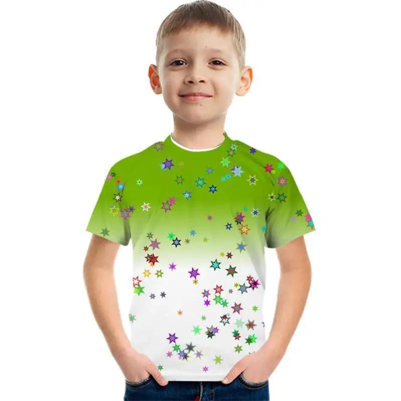 Летний топ с круглым вырезом, 3D геометрическим граффити-принтом, модный, повседневный, с коротким рукавом, детская футболка для мальчика
