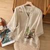 Блузка Вышивка Рубашка Стойка Воротник Вышитая Рубашка Лето Весна Женская Рукав с Воланом