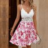 Женская мода лето-весна с цветочным узором и принтом без рукавов с v-образным вырезом и высокой талией повседневные платья