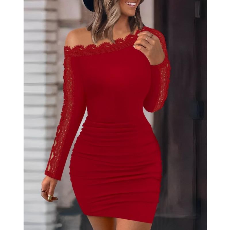 Женская мода осень зима однотонный принт с длинным рукавом на одно плечо коктейльные и вечерние платья