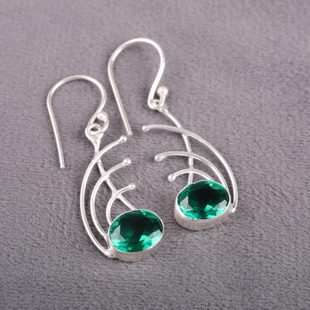 Зеленые изумрудные серьги-украшения, Ручная работа, Богемные серебряные серьги, Ювелирное изделие из стерлингового серебра 925 пробы, Подарок для нее