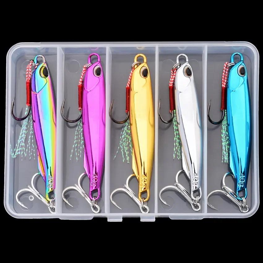 5 ШТ. Металлическая литая джиг-ложка 20/40/60 г для береговой ловли джиггингом, для ловли рыбы морской окунь, рыболовная приманка, искусственная приманка, коробка для снастей