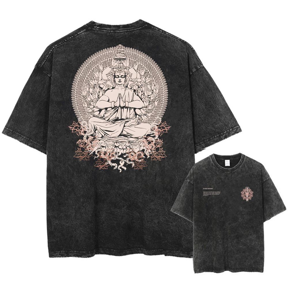 Уличная летняя футболка с коротким рукавом в винтажном стиле с японским принтом в стиле аниме, мужская повседневная свободная футболка в стиле Харадзюку с потертостями