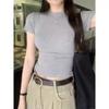 Женская футболка с круглым вырезом, прямым плечом и коротким рукавом, летняя новинка, облегающий и универсальный короткий топ