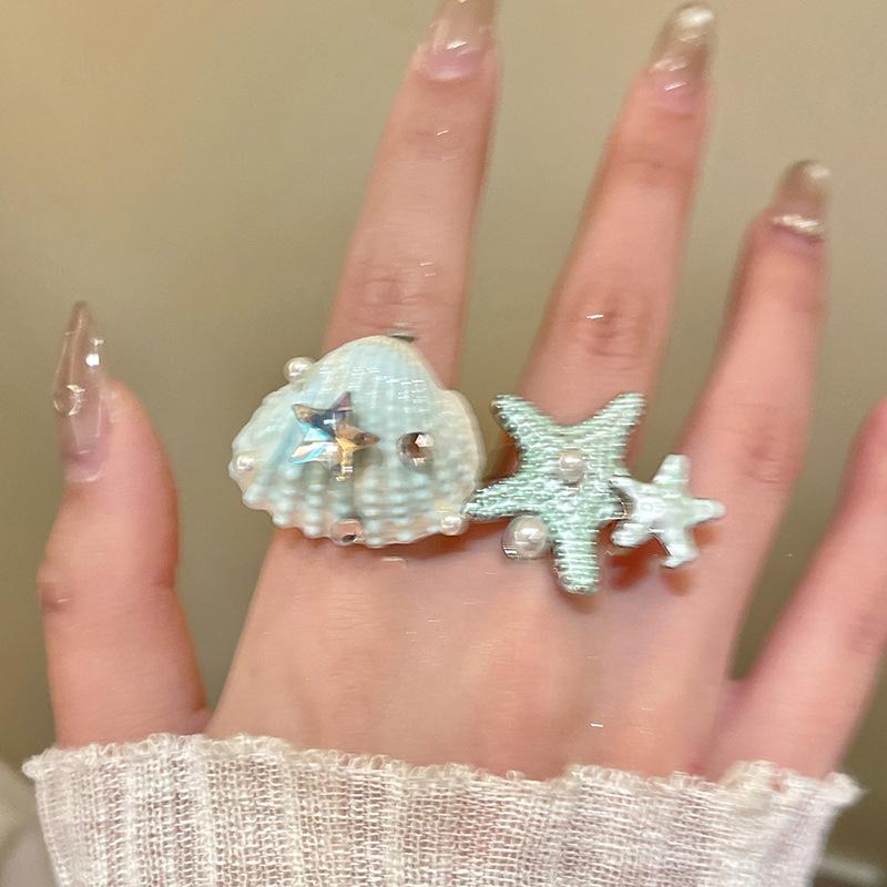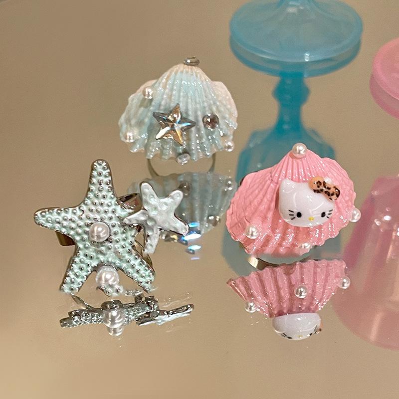 KT cat starfish shell open ring cute niche design high sense fashion versatile temperament jewelry women