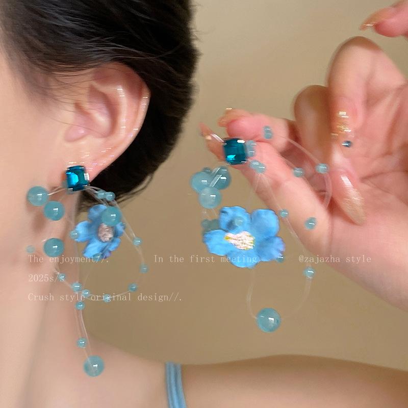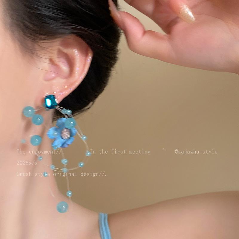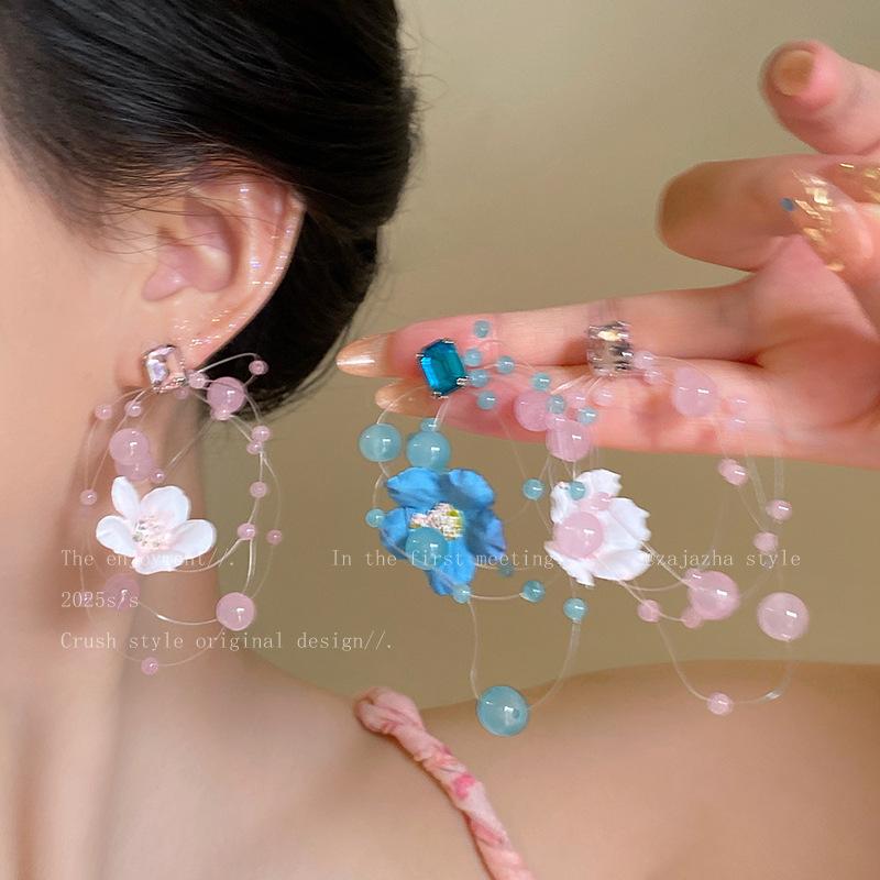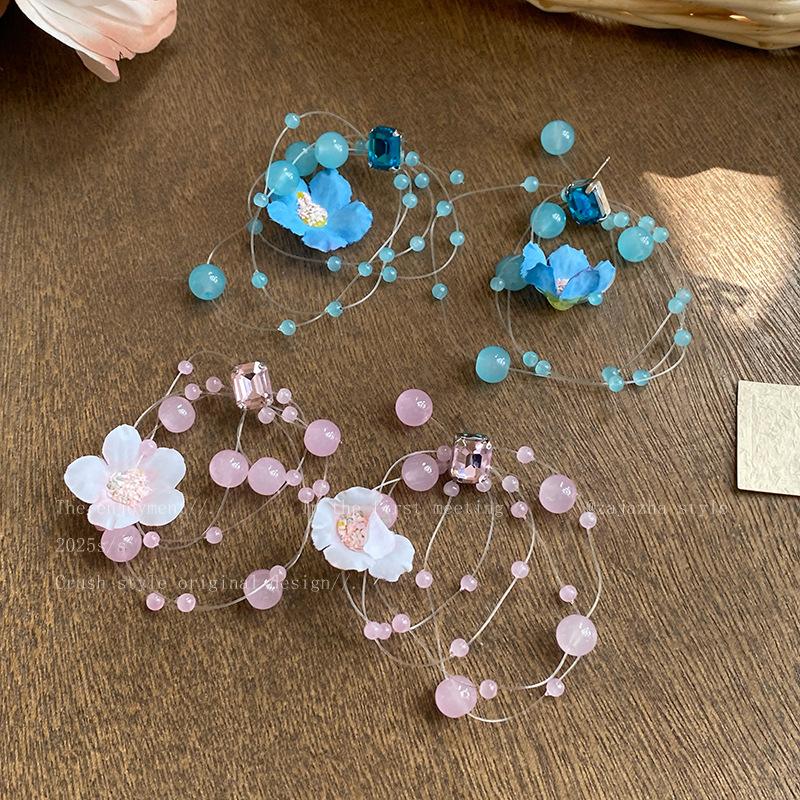 Серьги с бахромой из стеклянных бусин в виде цветка, летние серьги-пусеты в стиле дофаминового шика, серьги с темпераментом и атмосферой, женские