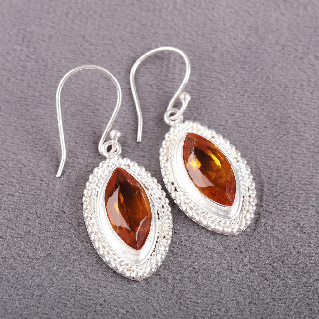 Серьги с цитрином, Ювелирные изделия из драгоценных камней из стерлингового серебра 925 пробы, Серьги ручной работы, Для подарка на День благодарения