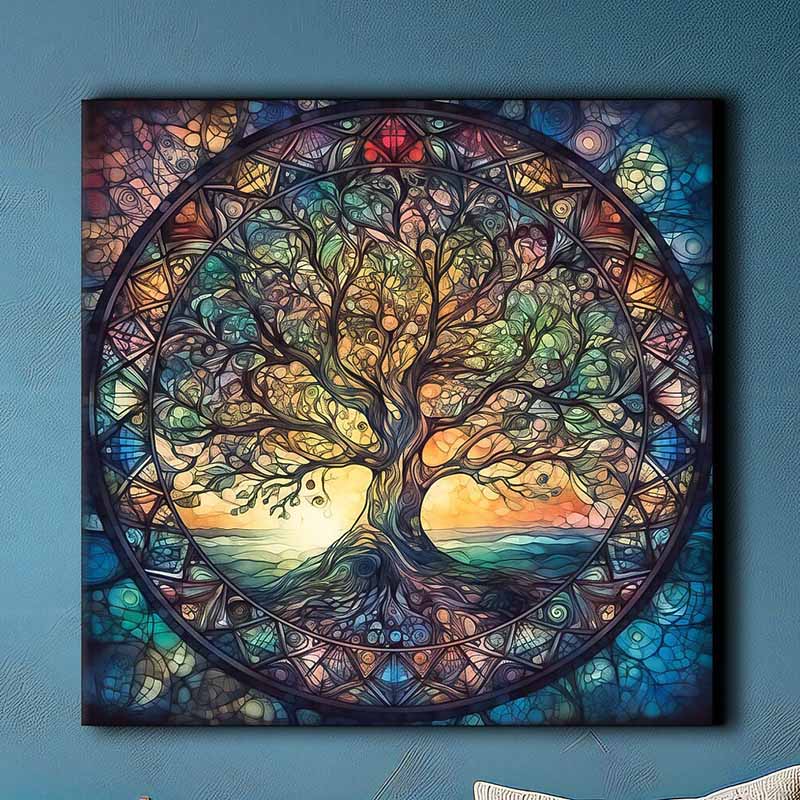 Красочная стеклянная масляная живопись, Древо Жизни, Кельтская фреска, Скандинавская мифология, Дерево в подарок, Печать и декор постера