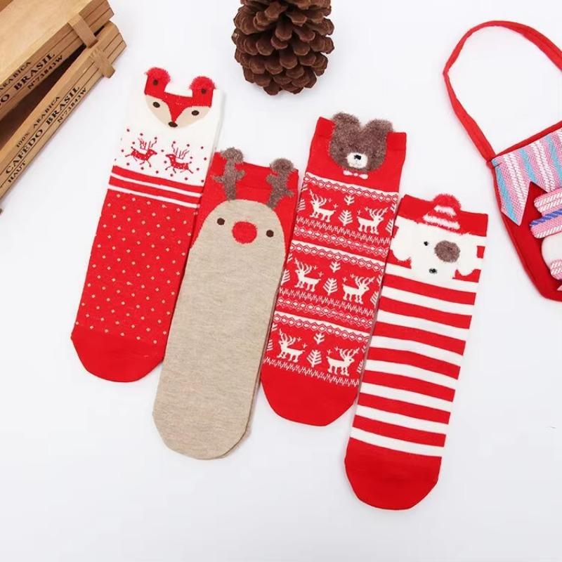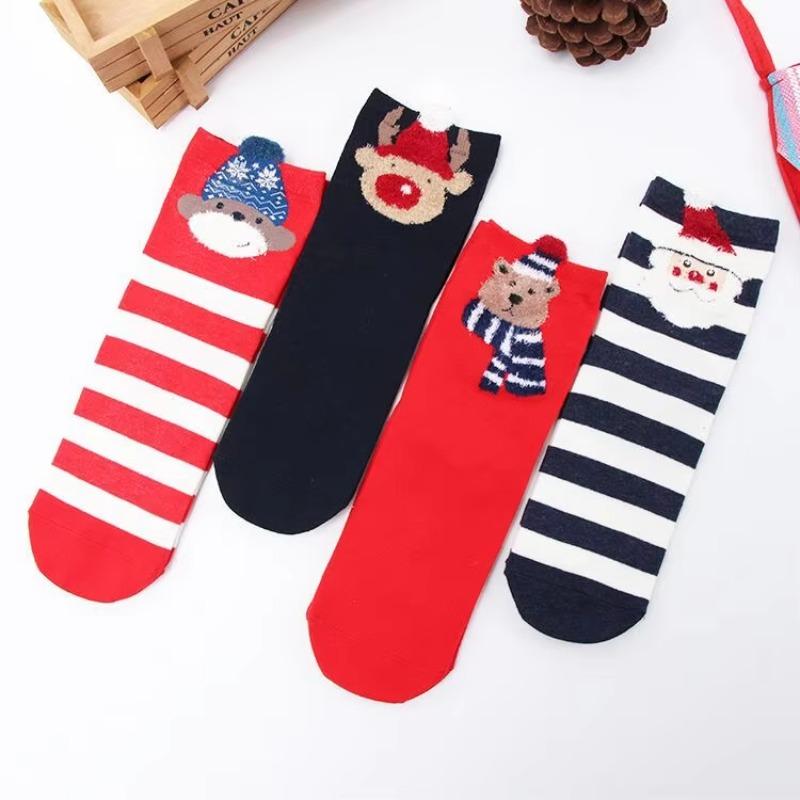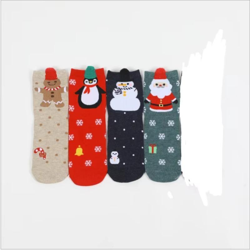 4 пары новых зимних милых рождественских носков, трехмерные мультяшные декоративные хлопковые носки средней длины, рождественские подарочные носки для женщин