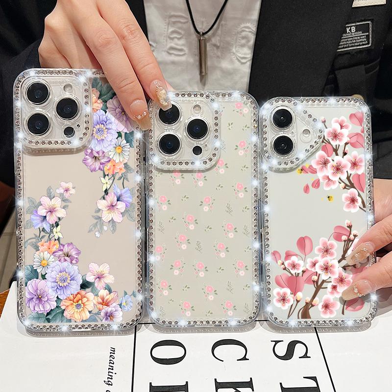 Прозрачный чехол с цветочным принтом сакуры и ромбовидной рамкой для iPhone 16E 16 15 Pro Max 14 Pro 13 12 11, противоударный чехол из мягкого силикона с защитой от падений — купить товар онлайн с бесплатной доставкой по всему миру!
