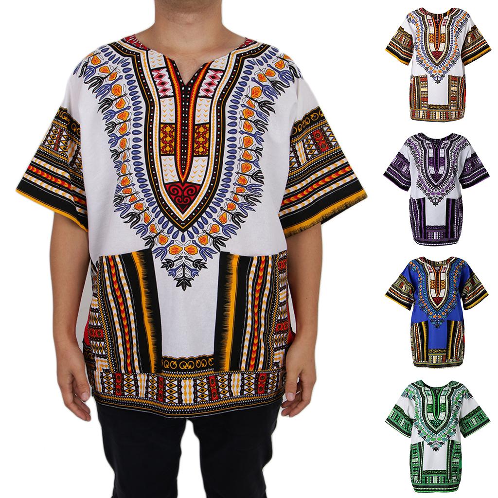 Унисекс Платье с африканскими принтами Хлопковая рубашка Дашики Этнический кафтан
