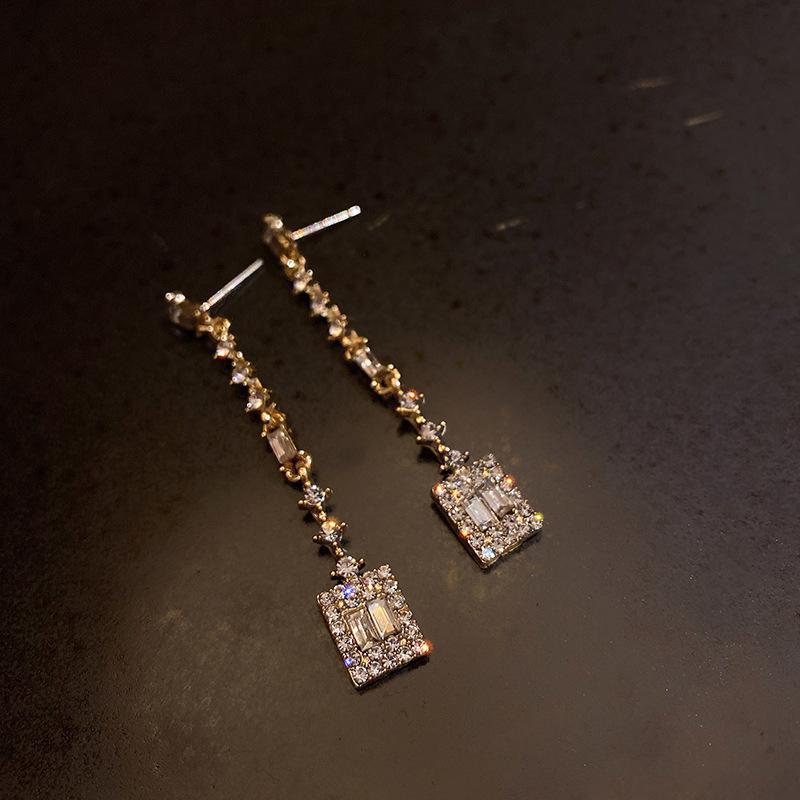 Стильные и простые серьги-гвоздики с длинными подвесками из сверкающих бриллиантов подчеркивают ваше лицо и утонченную индивидуальность. Серьги Dongdaemun нишевые универсальные.