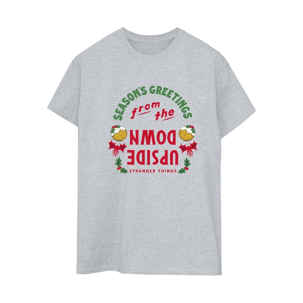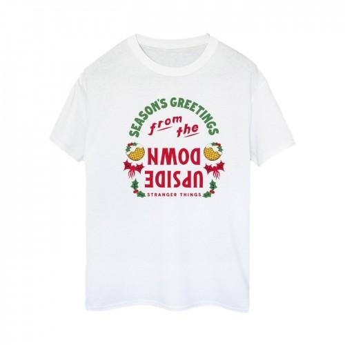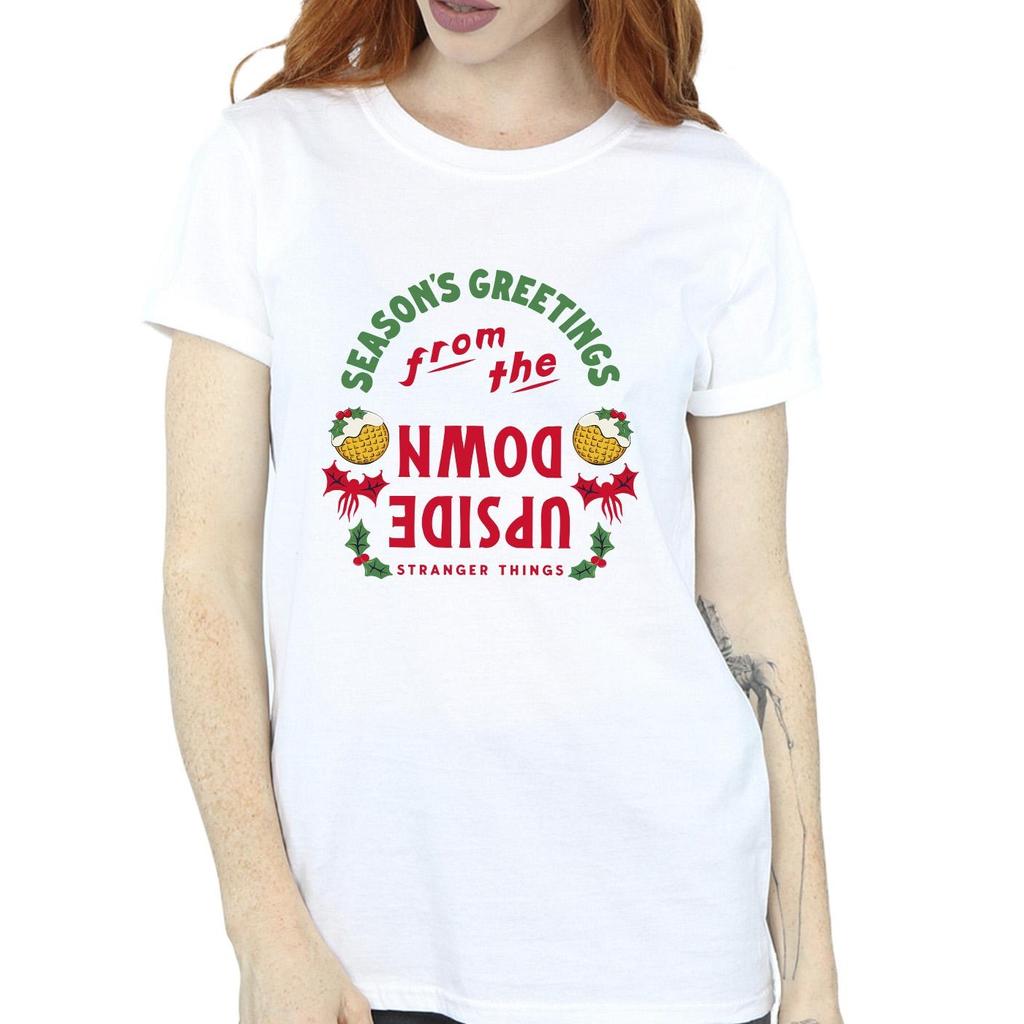 Netflix Женская/Дамская Хлопковая Футболка Бойфренда Stranger Things Вверх Дном Сезонные Поздравления