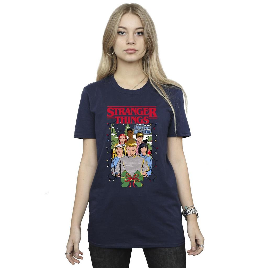 Netflix Womens/Ladies Stranger Things Christmas Poster Cotton Boyfriend T-Shirt