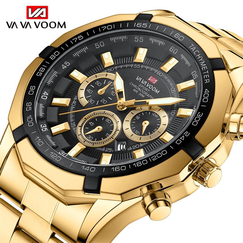 VA VA VOOM Кварцевые наручные часы, модные мужские часы, деловой стиль, ремешок из нержавеющей стали, календарь, циферблат, кварцевые наручные часы