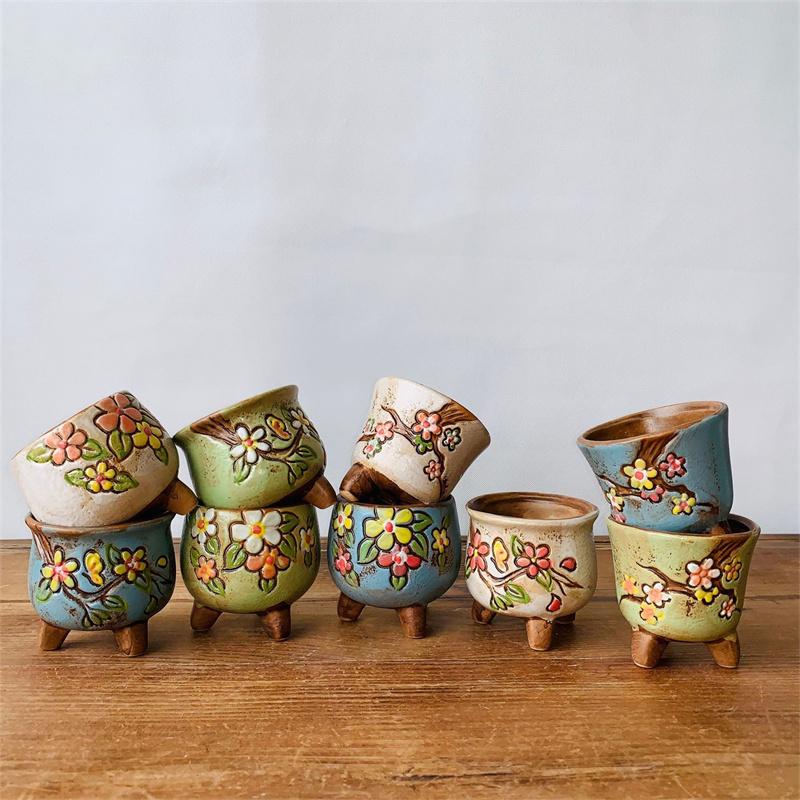Мясистый цветочный горшок Керамический ручная роспись Горшок для свежего большого пальца Проницаемый горшок
