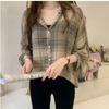 Женская мода повседневная весна осень клетчатый принт длинный рукав воротник поло блузки и рубашки