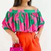 Женская мода повседневная летняя весна цветные блоки принт короткий рукав одно плечо блузки и рубашки