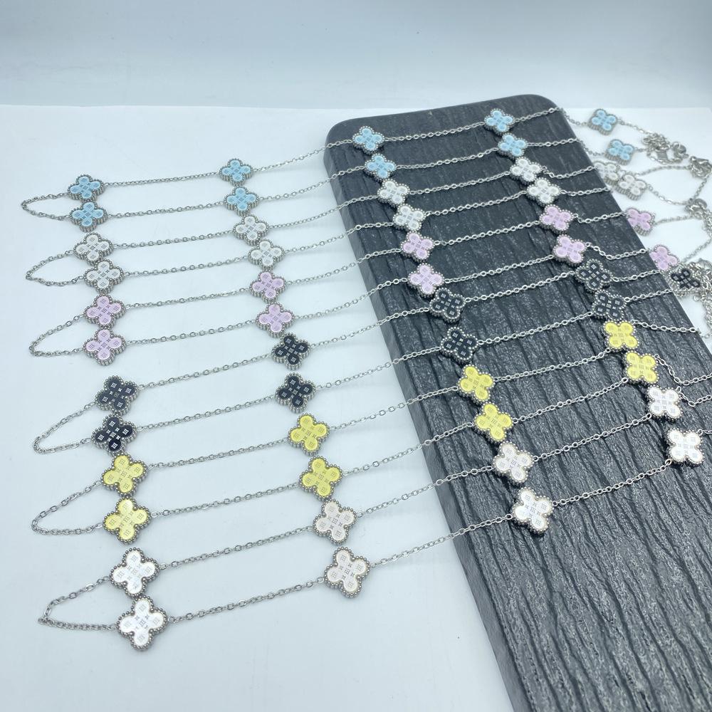 13ММ Ожерелье из титановой стали 60+5СМ 10 цветов Двусторонний узор звезды Ракушка Счастливое ожерелье Четырехлистный клевер