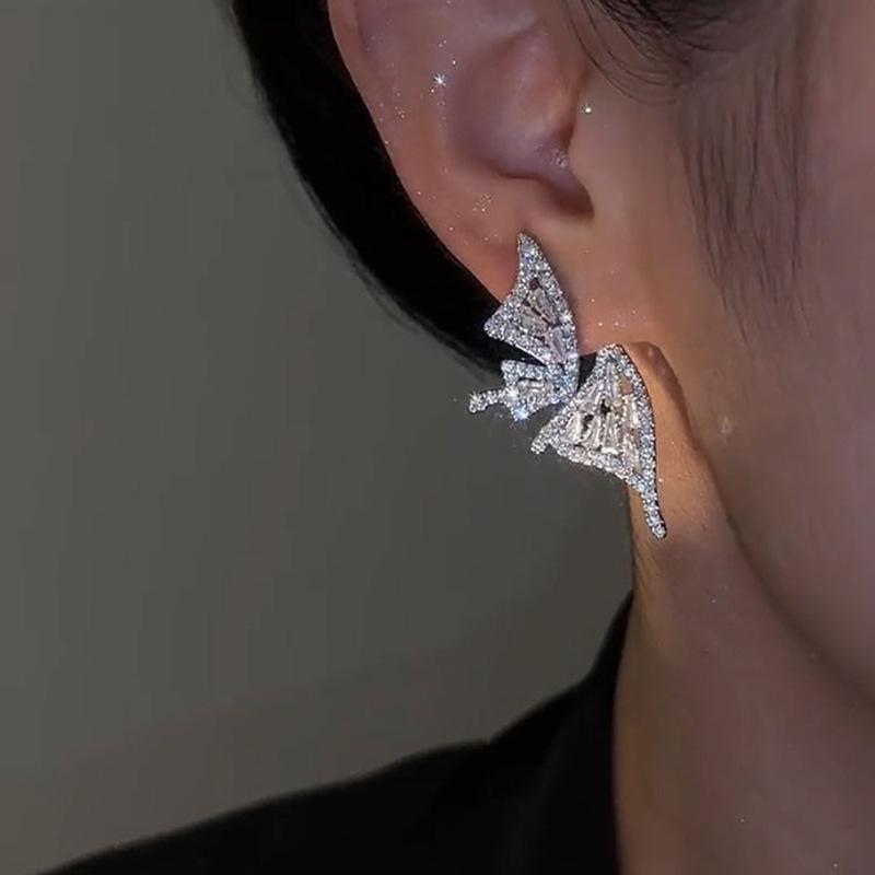 Крылья бабочки, пара серег, супер сверкающие темпераментные серьги-пусеты в стиле легкой роскоши, персонализированные серьги как у интернет-знаменитостей