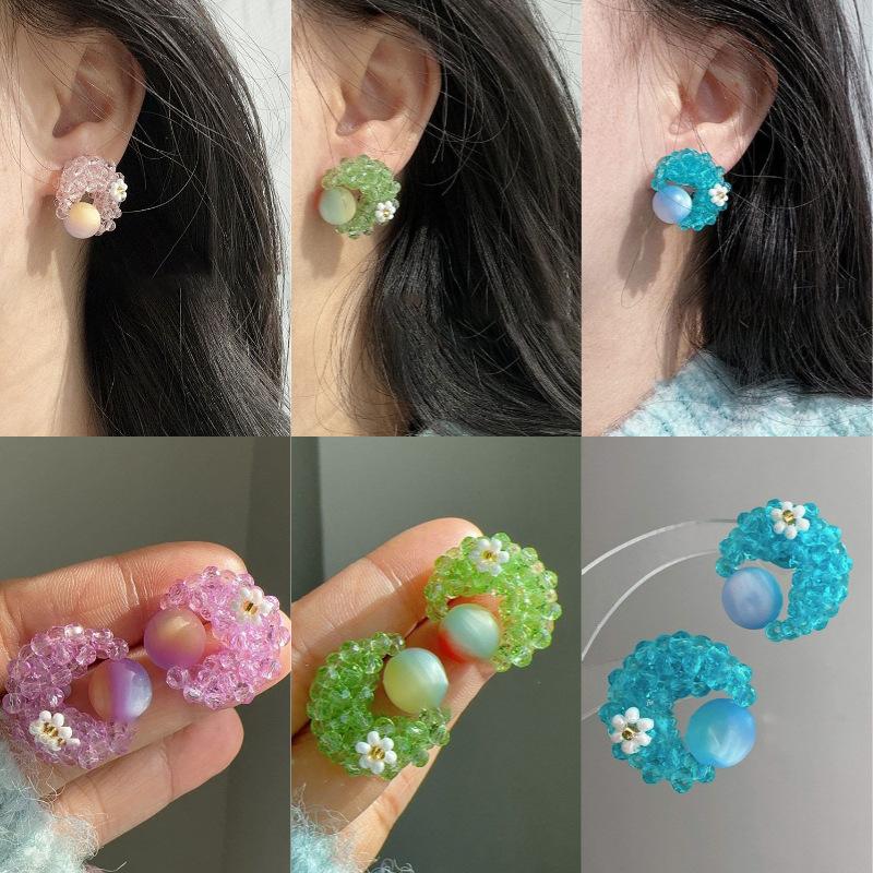 Жемчужные серьги-пусеты в виде цветка и луны, модные серьги с дизайном личности, милые, уменьшающие возраст, маленькие свежие серьги — купить товар онлайн с бесплатной доставкой по всему миру!