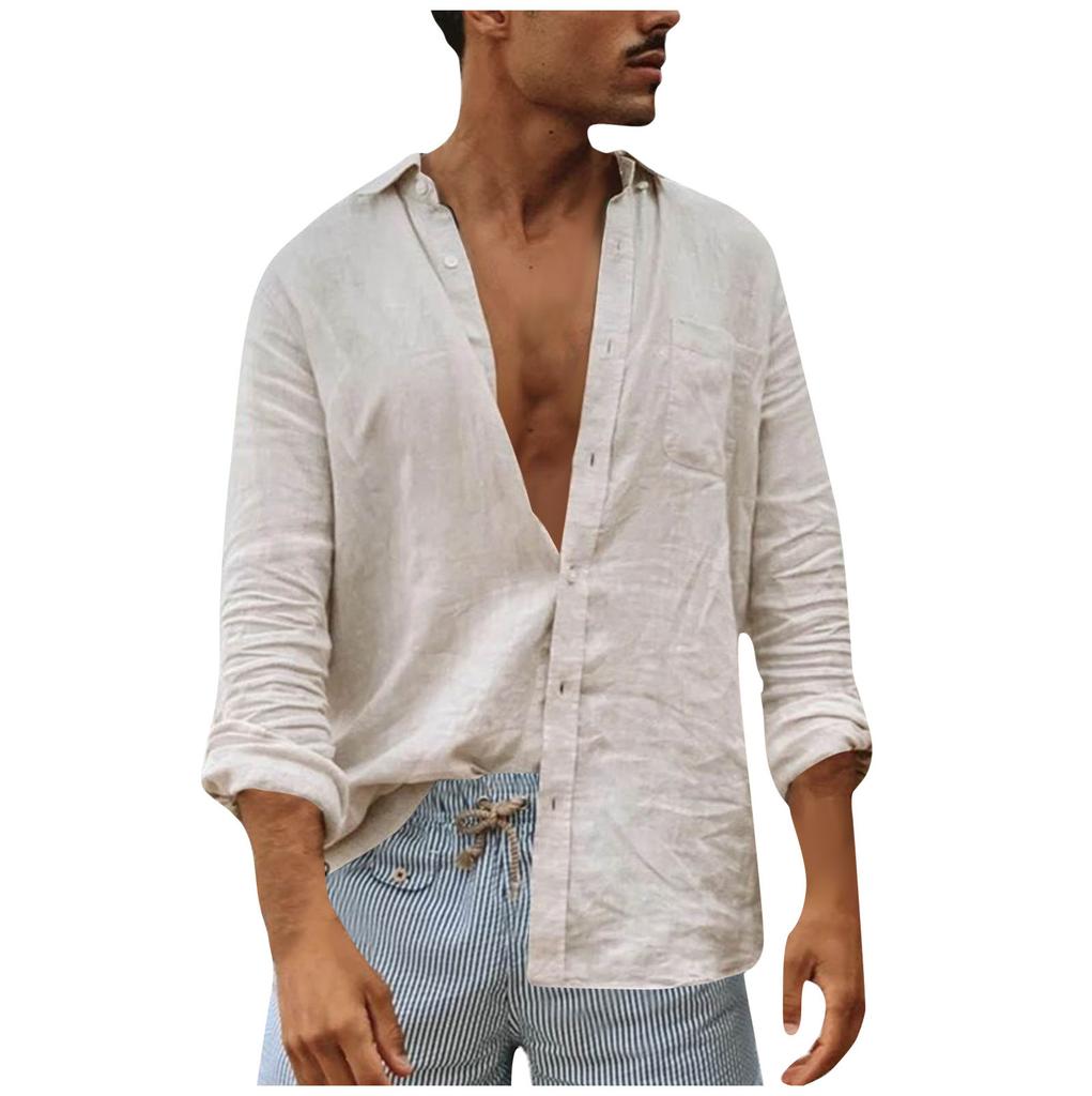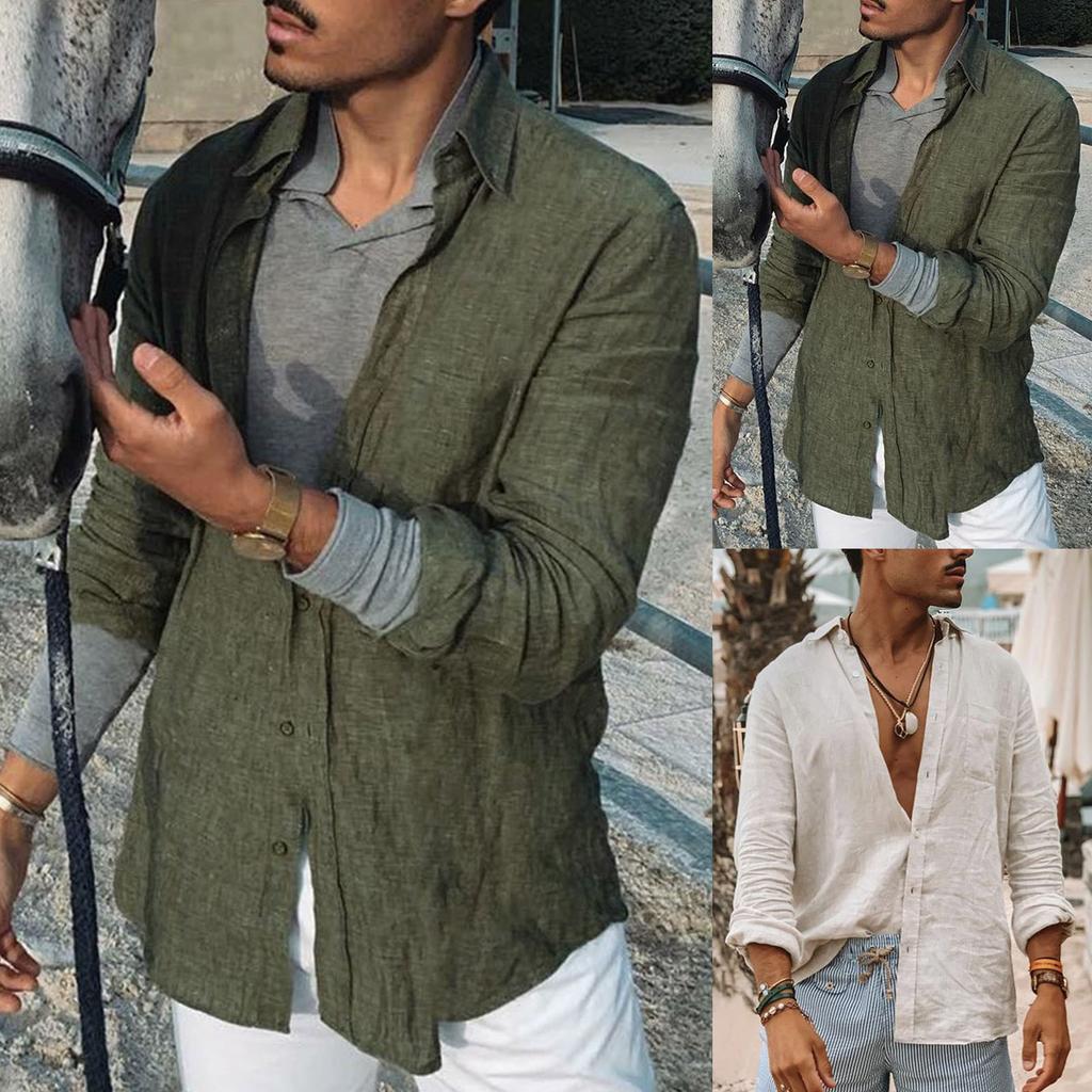 Мужская весенняя и свободная повседневная рубашка из хлопка и льна, рубашка с длинным рукавом, топ, блузка на пуговицах