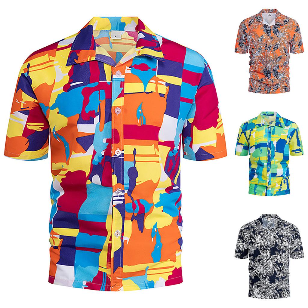 Мужские гавайские рубашки с цветочным принтом, пляжные рубашки на пуговицах с коротким рукавом — купить товар онлайн с бесплатной доставкой по всему миру!