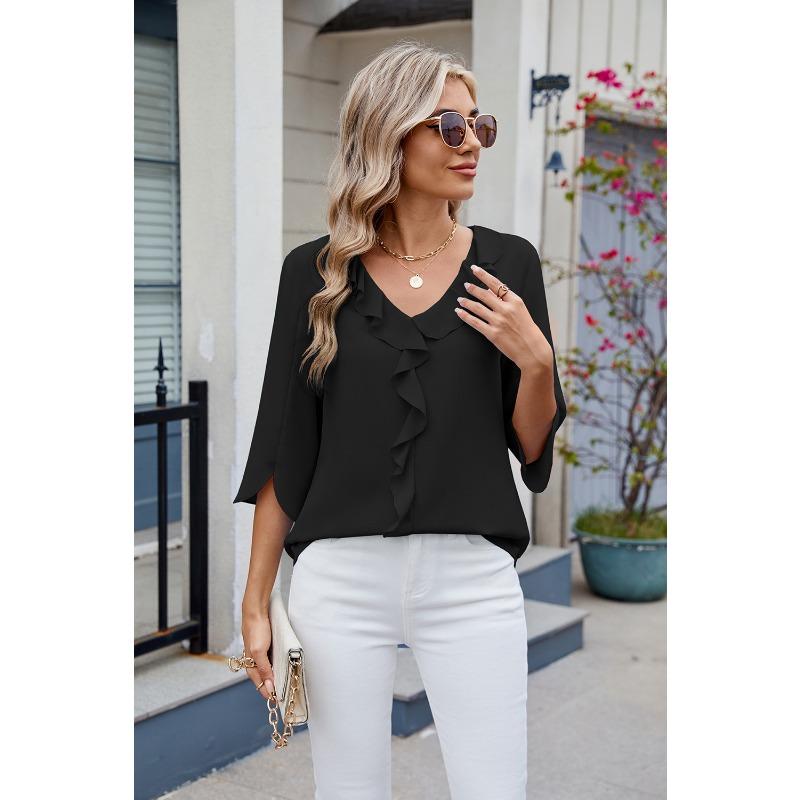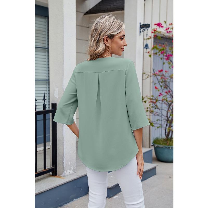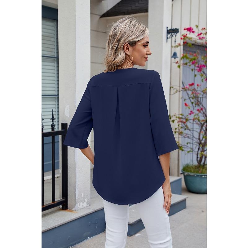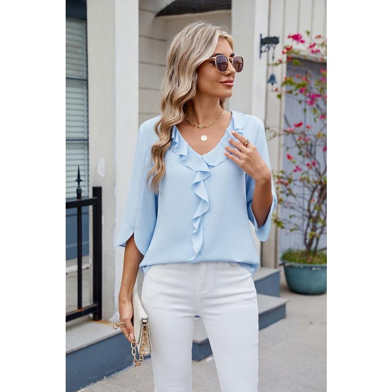 Женские модные повседневные летние весенние однотонные блузки и рубашки с v-образным вырезом и короткими рукавами с принтом
