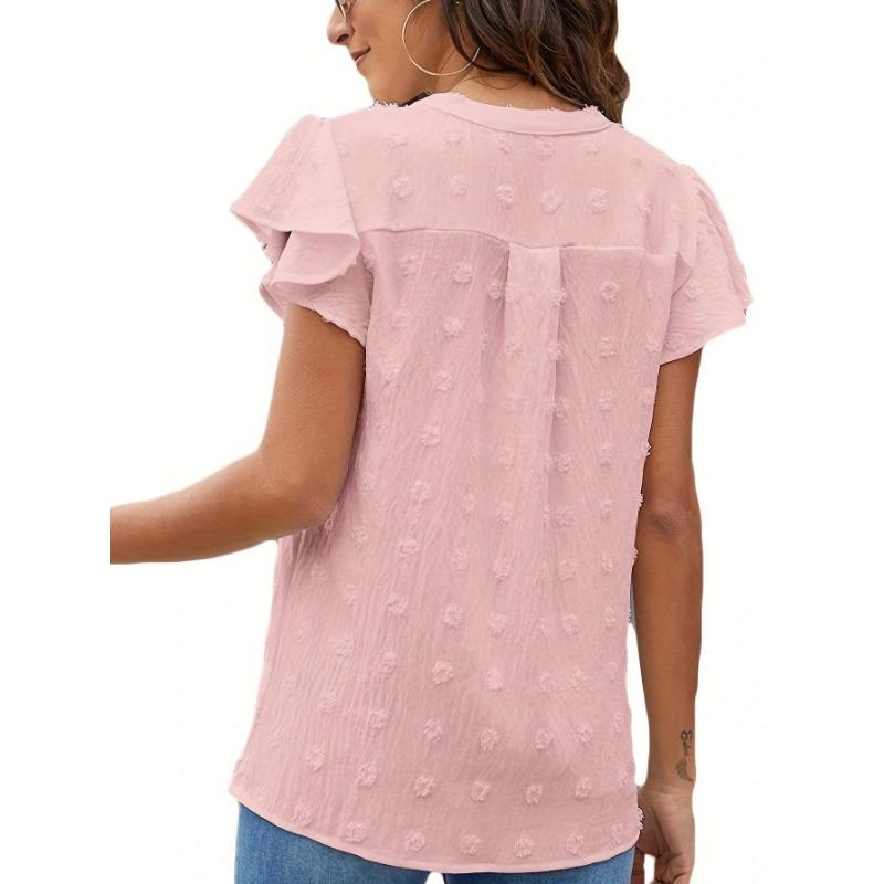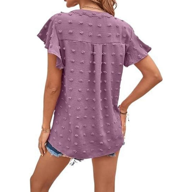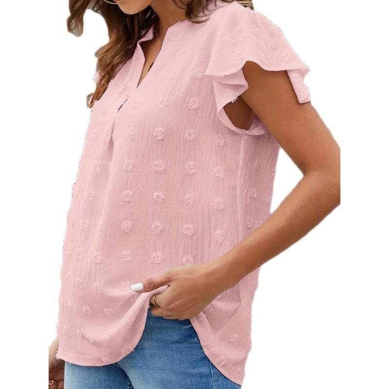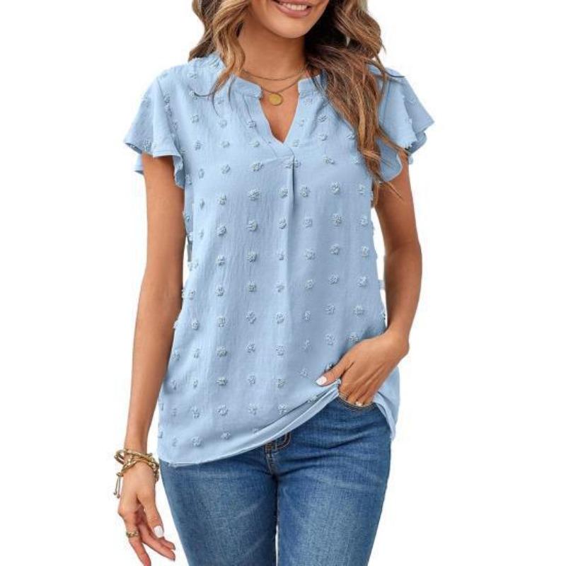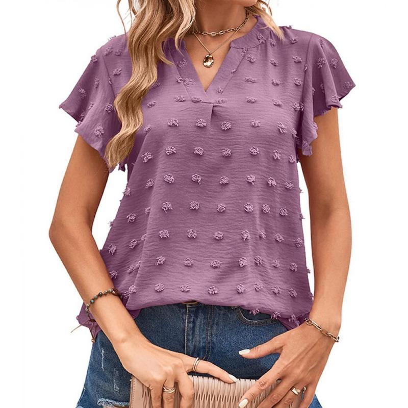 Женские модные повседневные летние весенние однотонные блузки и рубашки с v-образным вырезом и короткими рукавами с принтом