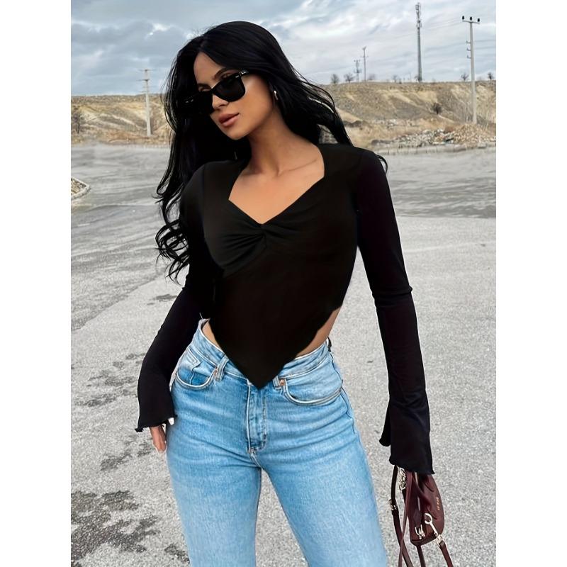 Женские модные повседневные весенне-осенние однотонные блузки и рубашки с v-образным вырезом и длинным рукавом с принтом — купить товар онлайн с бесплатной доставкой по всему миру!