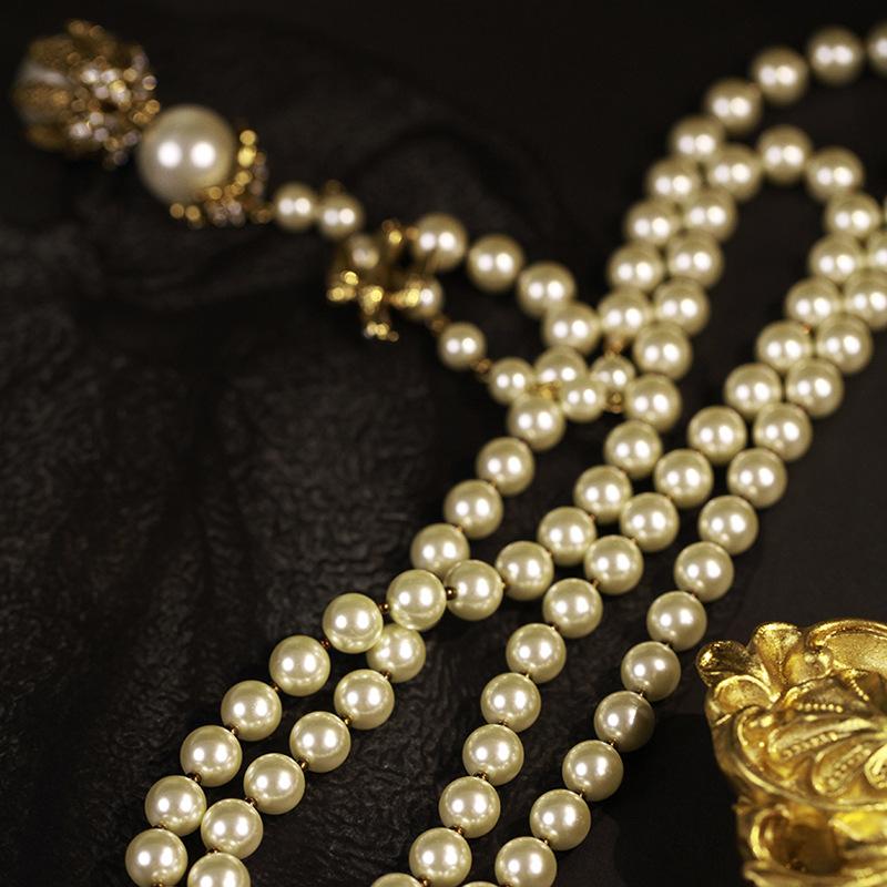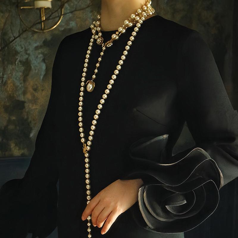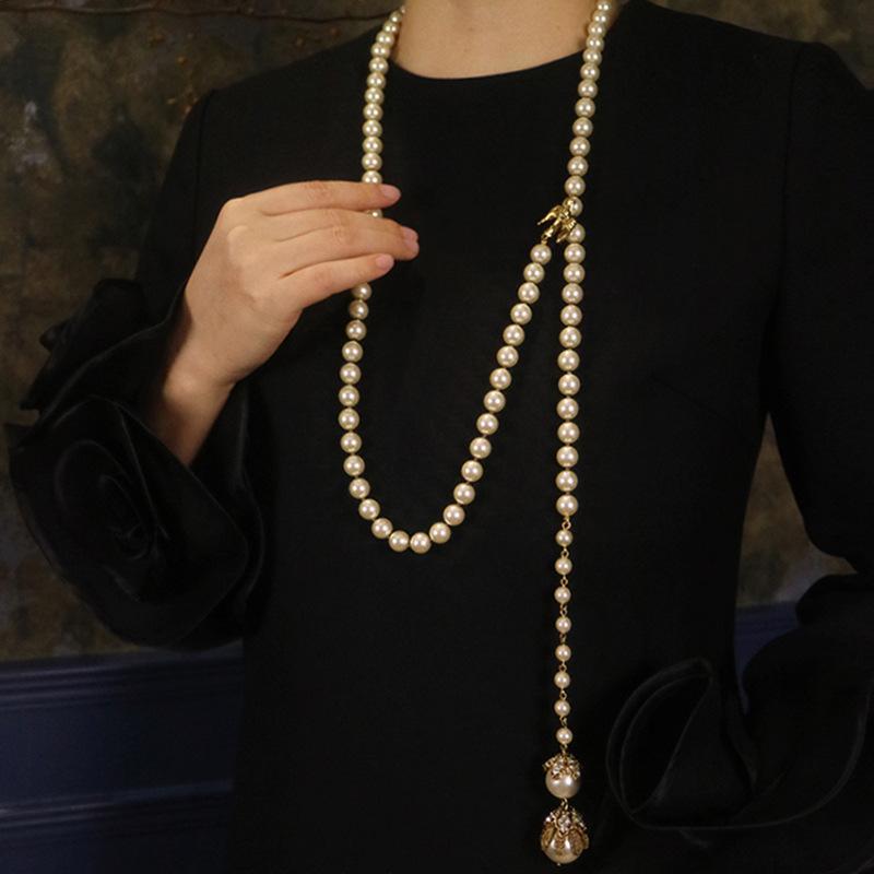 Французское ретро ожерелье с бриллиантами и жемчугом, регулируемое, длинное, атмосфера легкой роскоши, изысканная цепочка для ключицы, высококлассное персонализированное украшение