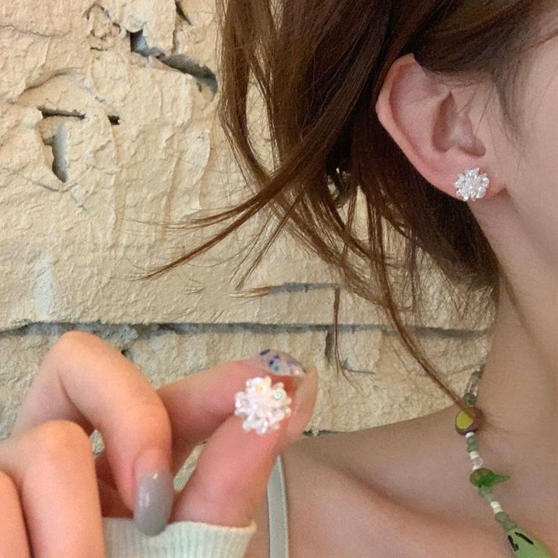 Корейские серьги-гвоздики в стиле инс с кристальными цветами — это простые, маленькие, свежие и модные серьги-гвоздики, универсальные и милые серьги.