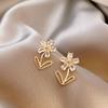 Серьги-гвоздики в виде цветка с каплей масла, изысканные маленькие серьги с темпераментом, универсальные модные серьги с высоким чувством стиля, женские