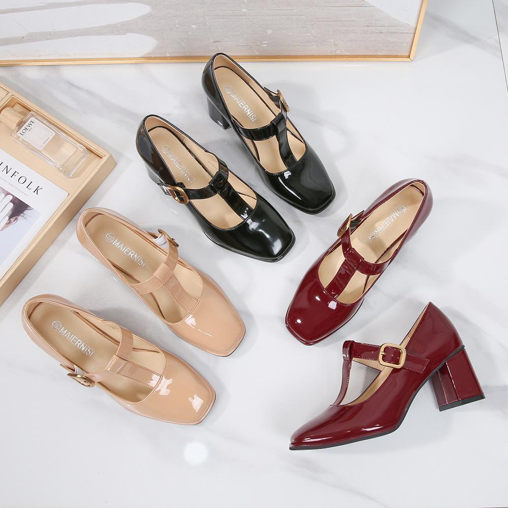 Женские туфли Мэри Джейн с квадратным носком, новые черные туфли, толстый каблук, одинарные туфли, женственность, Т-образный ремешок, ретро, высокие каблуки — купить товар онлайн с бесплатной доставкой до всему миру!