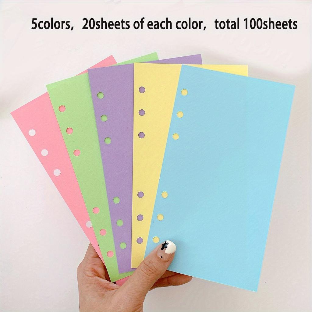 100 листов Чистая цветная бумага A6 с 6 отверстиями для блокнота на кольцах, Бумага для заметок, Бумага на кольцах, Перфорированная бумага