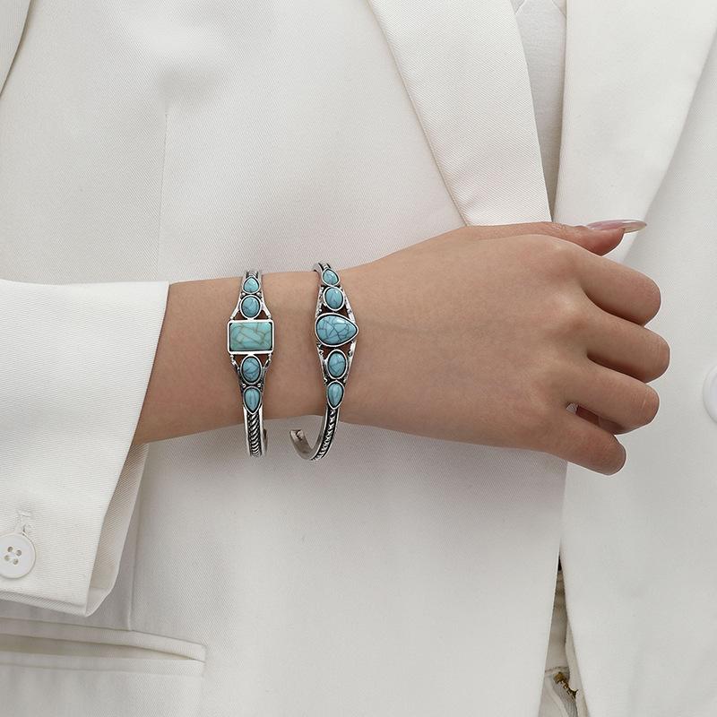 Богемский Винтажный Бирюзовый Открытый Регулируемый Браслет, Резной Полый Геометрический Браслет — купить товар онлайн с бесплатной доставкой по всему миру!