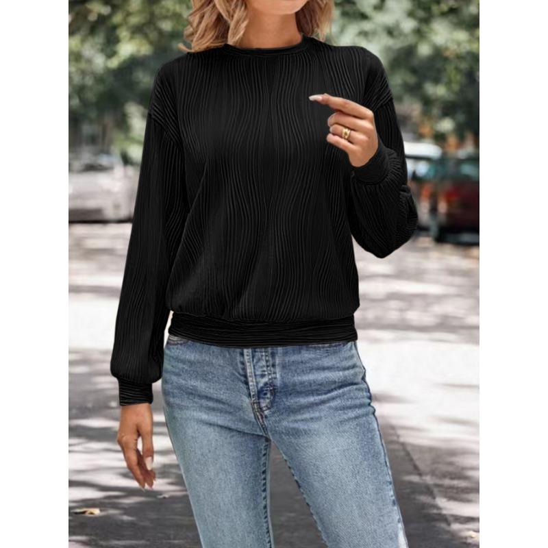 Женские модные повседневные весенне-осенние однотонные блузки и рубашки с круглым вырезом и длинными рукавами с принтом