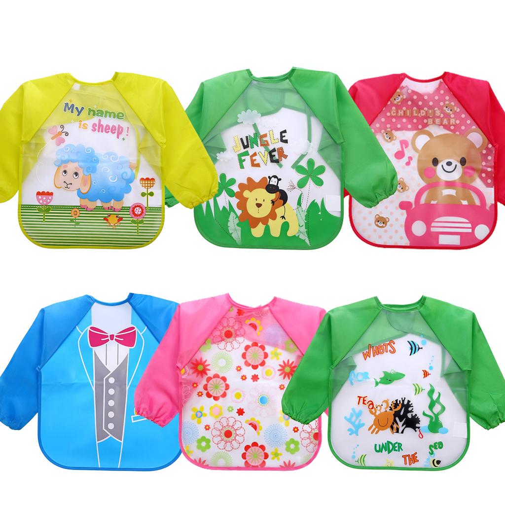 Водонепроницаемый фартук для кормления с длинными рукавами и рисунком для мальчиков и девочек, нагрудник-нагрудник