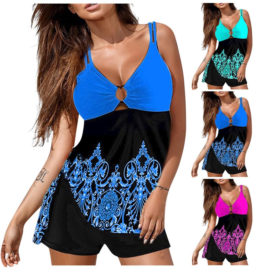Женский купальник с принтом и разделенным плоским углом, большой купальник, купальный костюм — купить товар онлайн с бесплатной доставкой по всему миру!