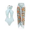 Женская мода цельный бикини сплошной цвет летающий край крест полый купальник комплект из двух предметов