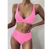 Женский однотонный комплект бикини с высокой грудью и бретельками, купальник из двух частей