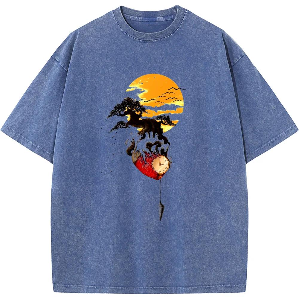 Время Заката Гора Мужская Женская Выстиранная Футболка Хлопок Смешная Свободная Отбеленная Футболка Ретро Отбеленная Футболка Топы Футболка