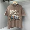 Интересная мультяшная печать автобуса, выстиранная, ретро, снежная, мужская футболка, оверсайз, свободные футболки, хлопок, дышащие футболки