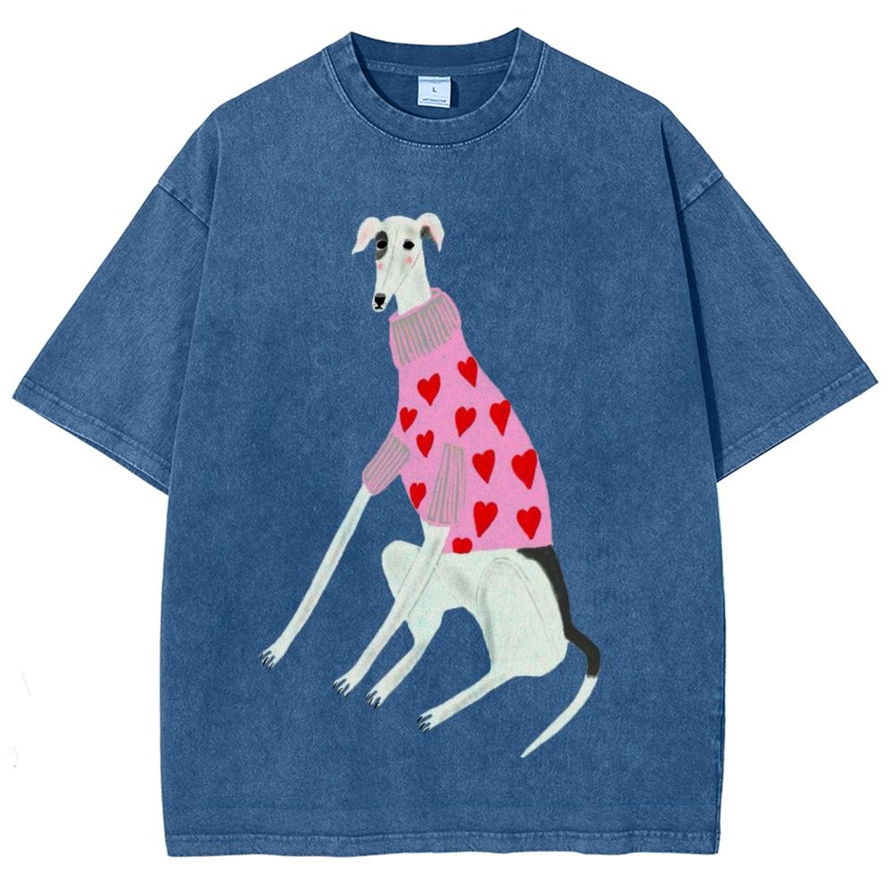 Ретро выварка винтажные мужские и женские футболки мультяшный мультяшный принт забавной собаки короткий рукав высококачественная одежда
